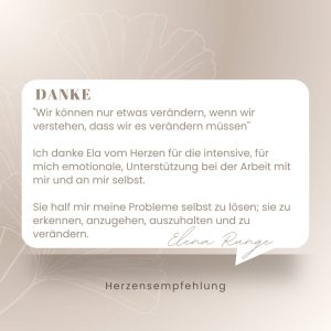 Herzlichen Dank, liebe Ela, für deine einfühlsame Begleitung und wertvolle Unterstützung!